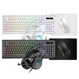 The perfect all-in-one upgrade for any gamer. This sleek bundle includes an RGB keyboard, RGB mouse, RGB wired headphones, and a mouse mat, all designed to deliver style, comfort, and performance straight out of the box. With immersive lighting and a clean, modern design, it’s ideal for gaming, streaming, or everyday use. Available in black or white, the Gamer 4-in-1 Kit brings a bold, coordinated look to any desk while giving you everything you need to play in style.
